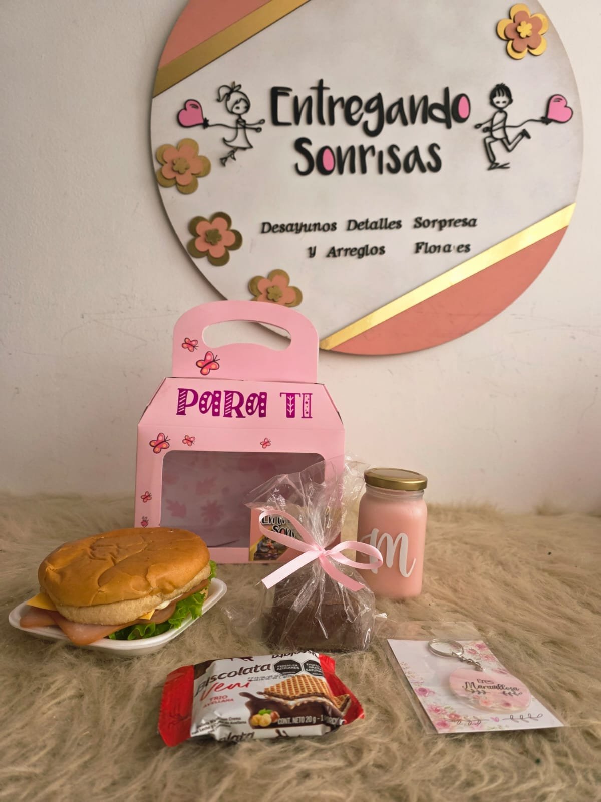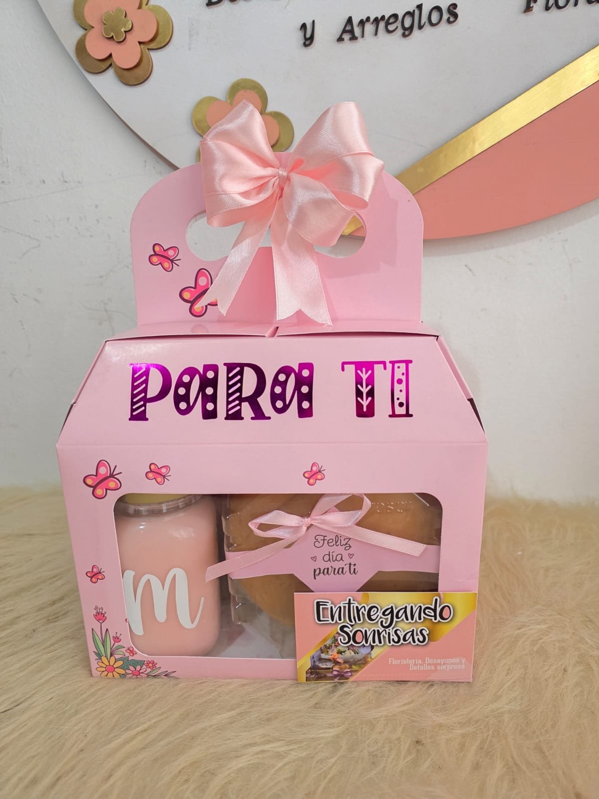 Sorprende con Dulce Inspiración 1, un delicioso detalle perfecto para alegrar el día. Este desayuno incluye un sándwich de jamón y queso, frasco de yogur, brownie de arequipe y una galleta de chocolate con avellana, acompañado de un hermoso llavero de la ocasión. Un regalo especial para compartir un momento dulce y lleno de cariño.