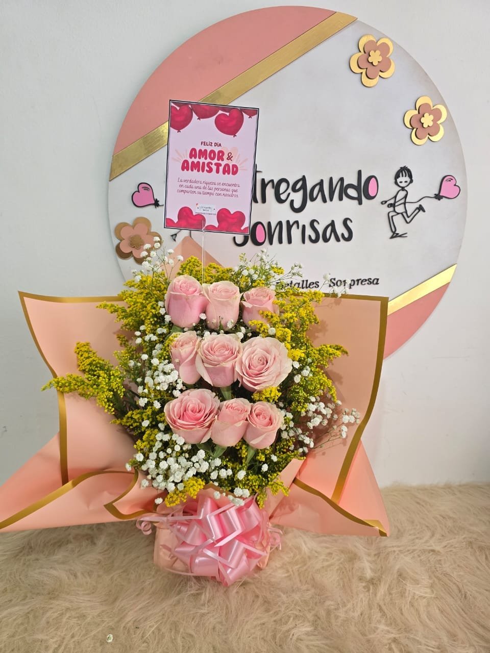 9 rosas rosadas o color dependiendo disponibilidad